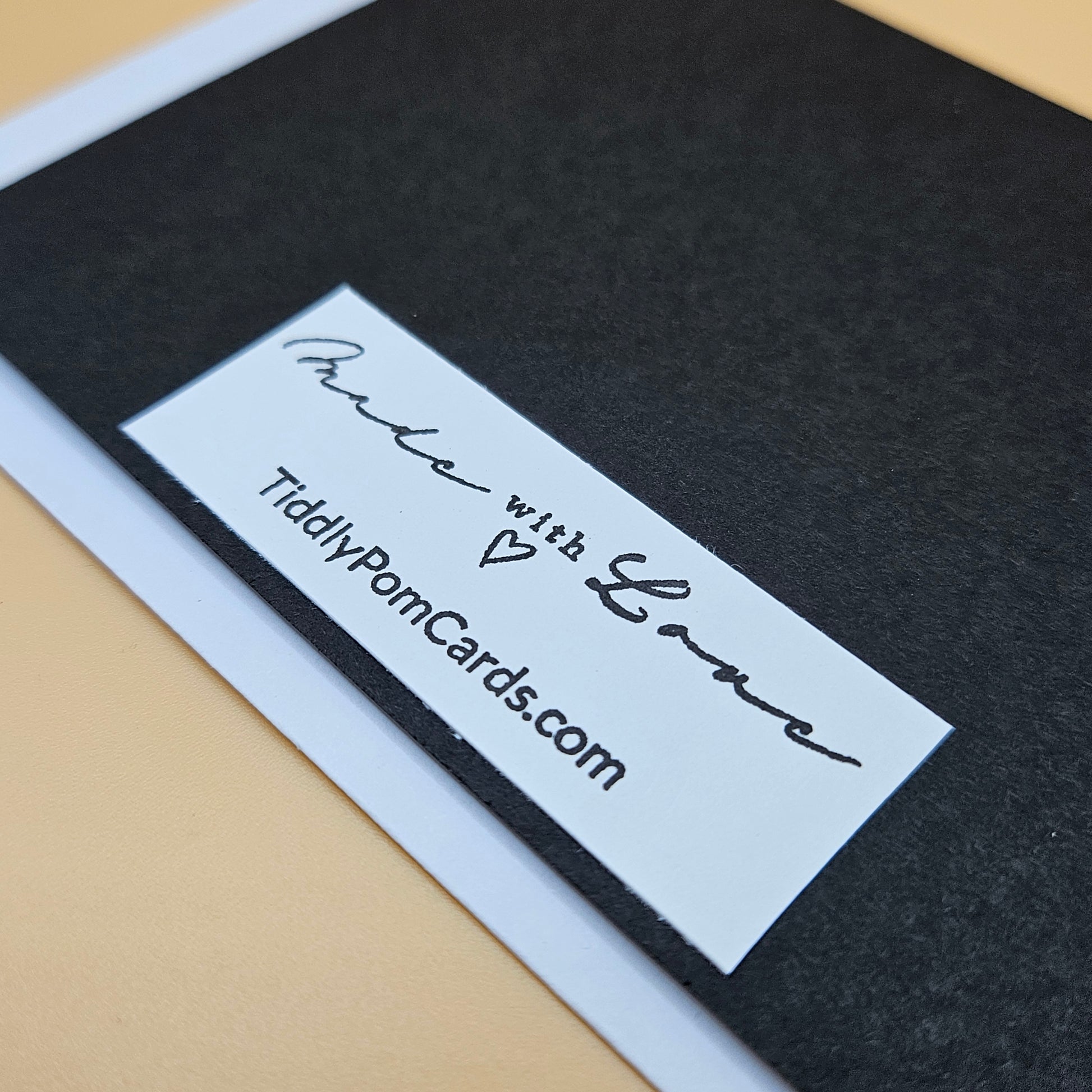 Each card is handmade with layered textures, dimension, and care—no mass production here. We use premium materials, hand-cut elements, and creative techniques like embossing, stamping, and decoupage to ensure every card feels personal and truly one-of-a-kind. Our logo and website are printed on the back of the card.
