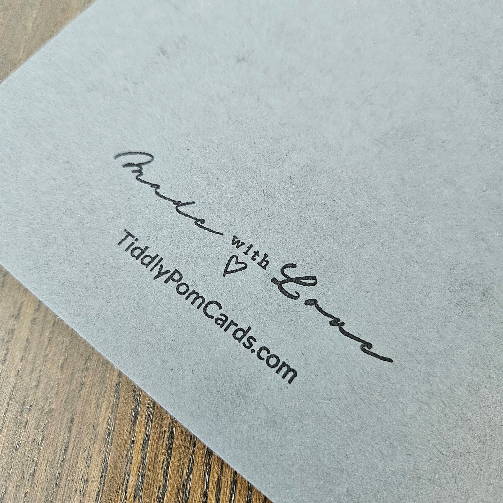 Note: Each card is individually handmade with layered die-cut elements. Slight variations make each one uniquely yours. Tiddly Pom Cards logo and website are hand-stamped on the back.