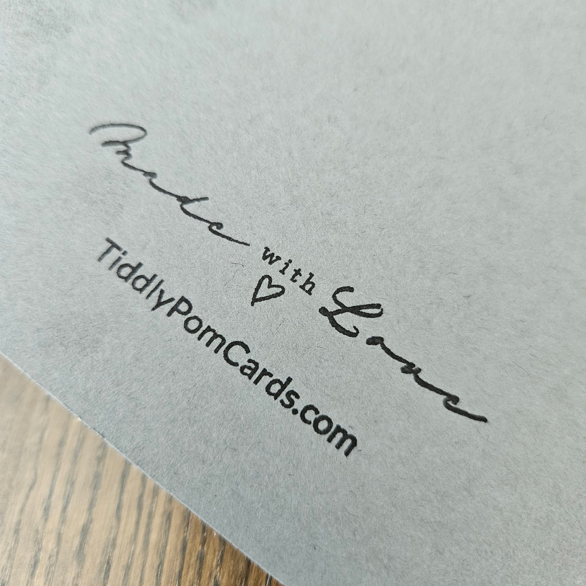 Note: Each card is individually handmade with layered die-cut elements. Slight variations make each one uniquely yours. Tiddly Pom Cards logo and website are hand-stamped on the back.