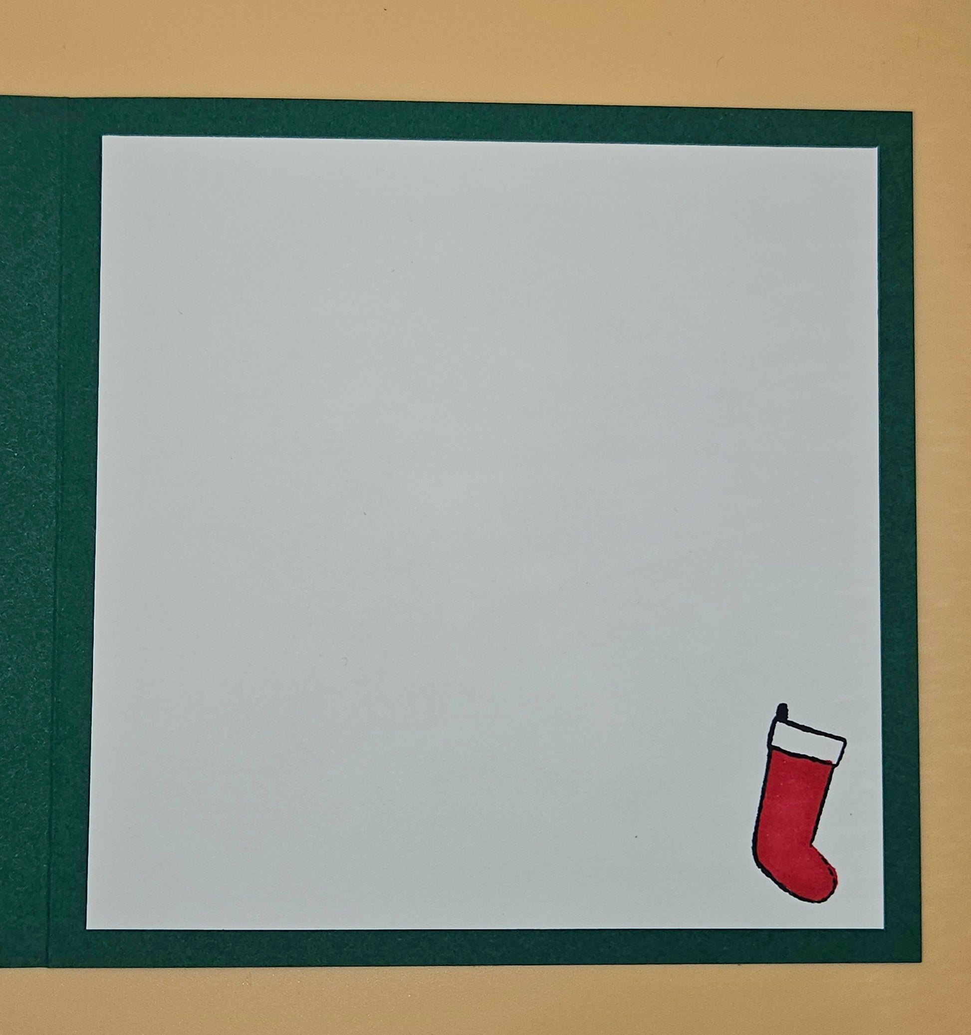Merry Christmas (Forest Green Card): Features a half-wreath design with a charming gold hanging Christmas stocking accent.