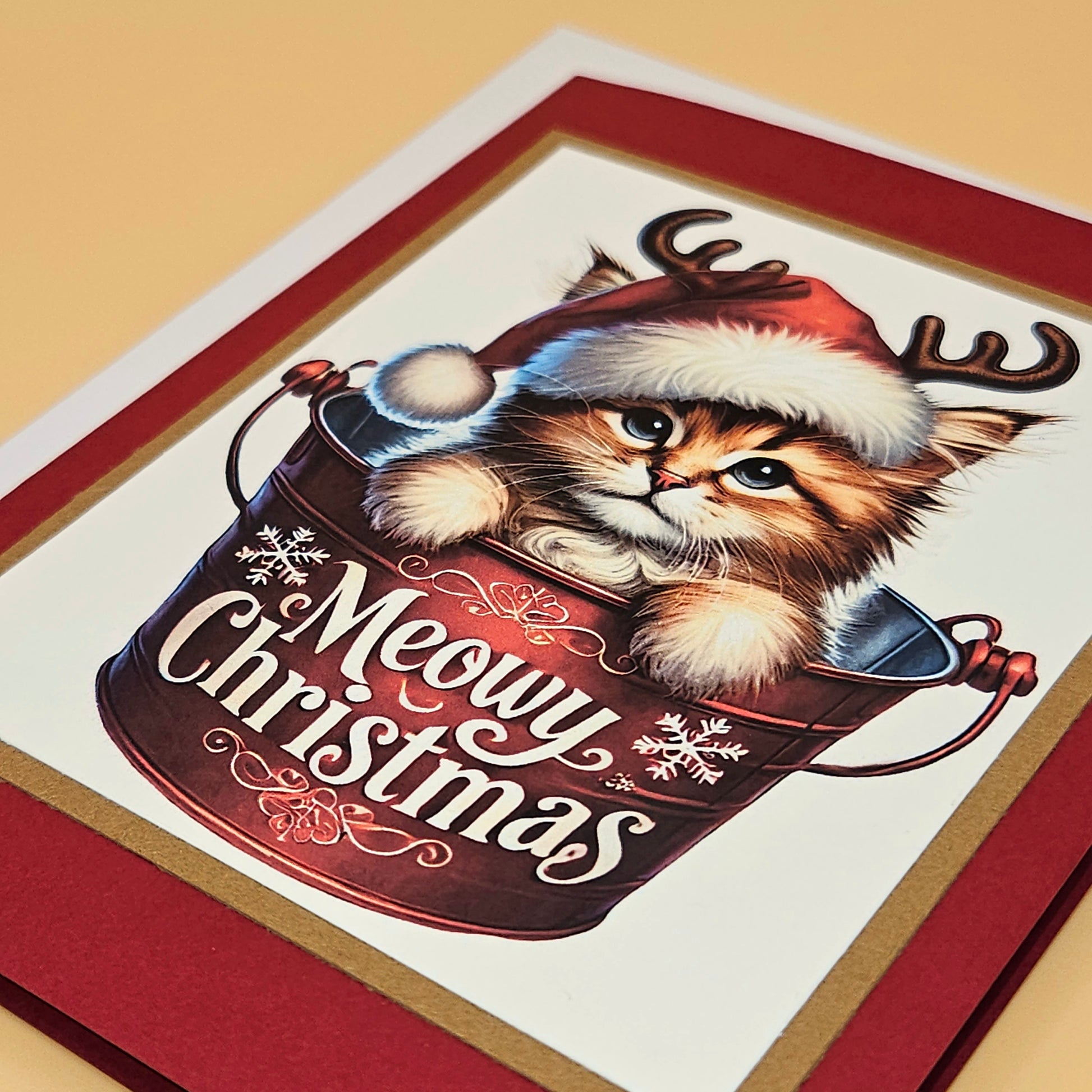 Handmade Christmas Card, Funny “Meowy Christmas” Holiday Greeting Card for Cat Lovers