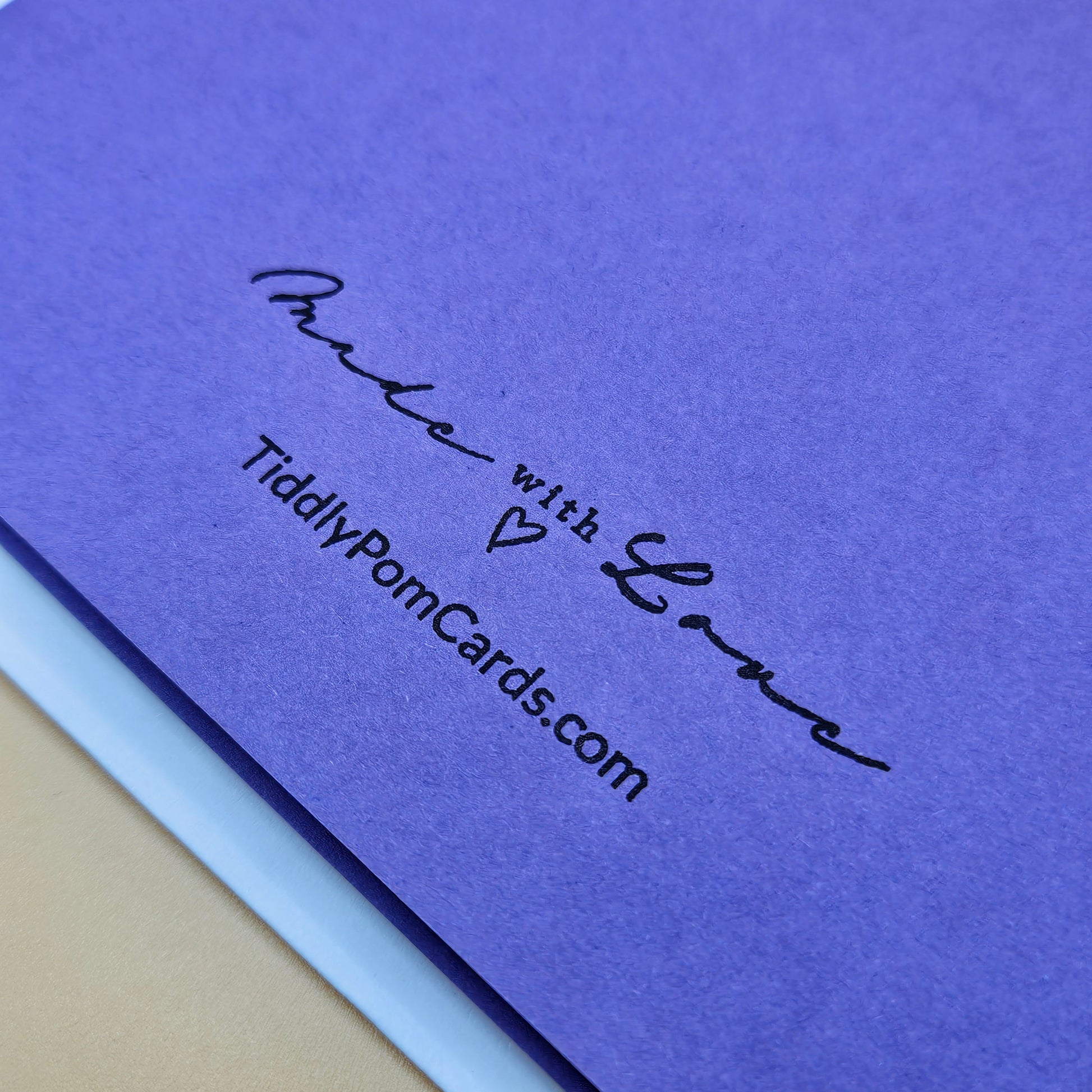 Each card is handmade with layered textures, dimension, and care—no mass production here. We use premium materials, hand-cut elements, and creative techniques like embossing, stamping, and decoupage to ensure every card feels personal and truly one-of-a-kind. Our logo and website are printed on the back of the card.