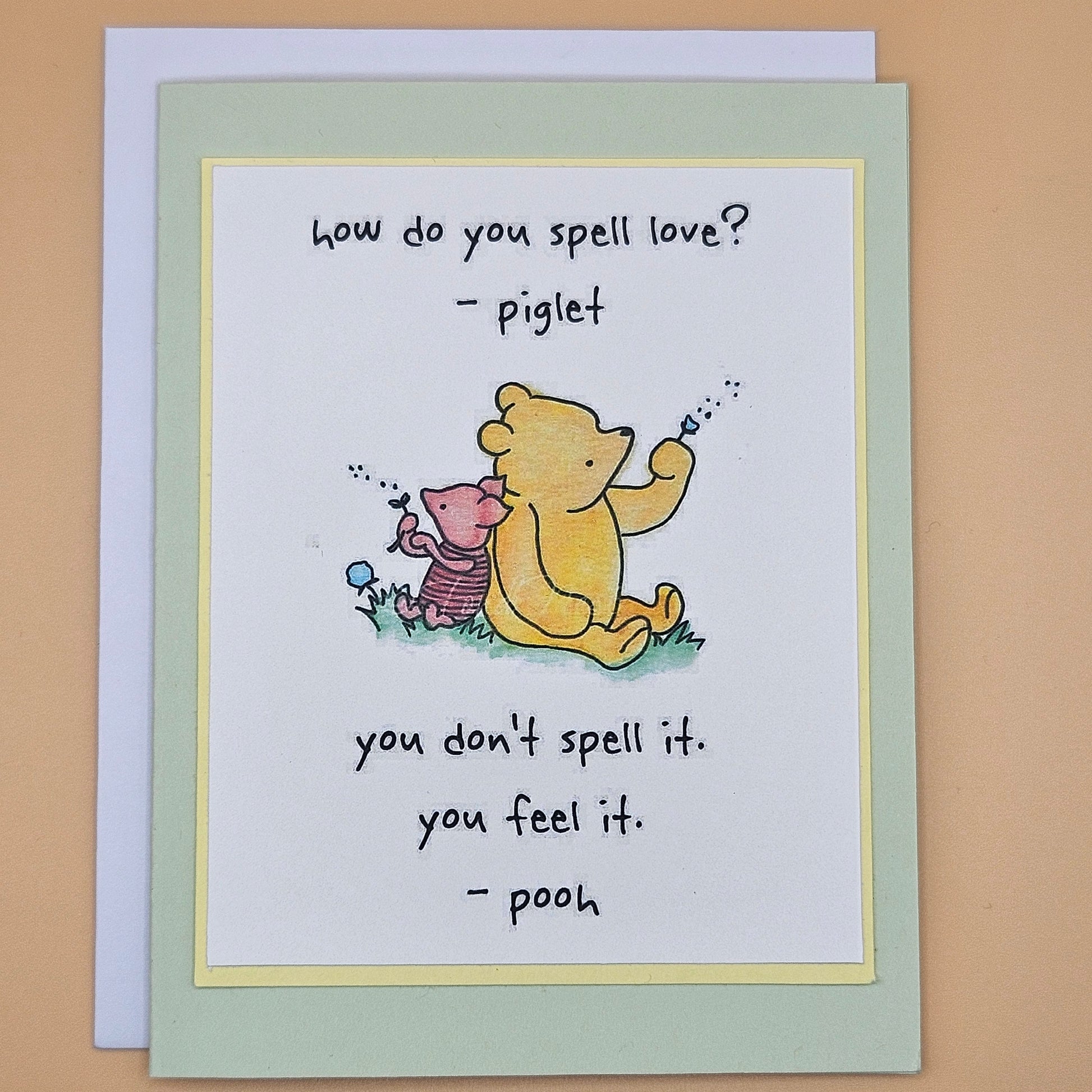 Winnie the Pooh Card for Friends, Handmade Friendship Greeting Card, Piglet’s Love Quote Card