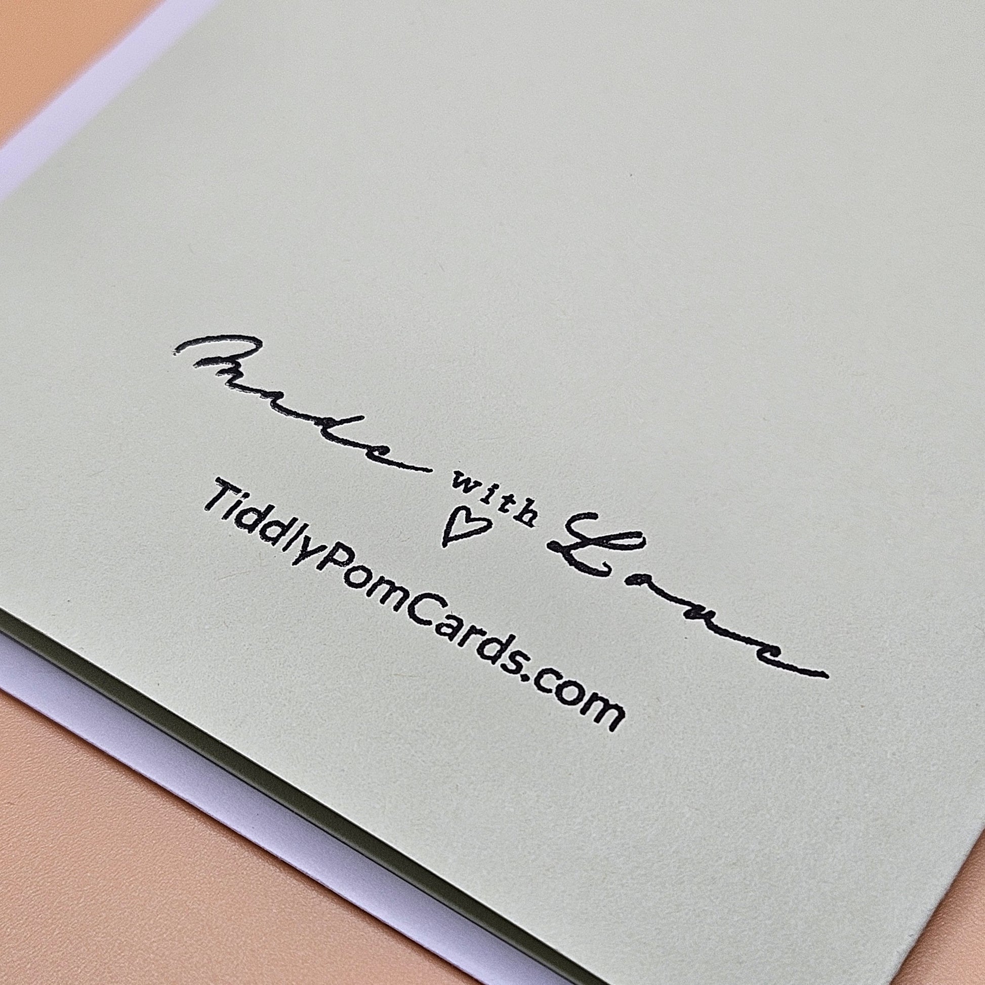 Each card is handmade with layered textures, dimension, and care—no mass production here. We use premium materials, hand-cut elements, and creative techniques like embossing, stamping, and decoupage to ensure every card feels personal and truly one-of-a-kind. Our logo and website are printed on the back of the card.
