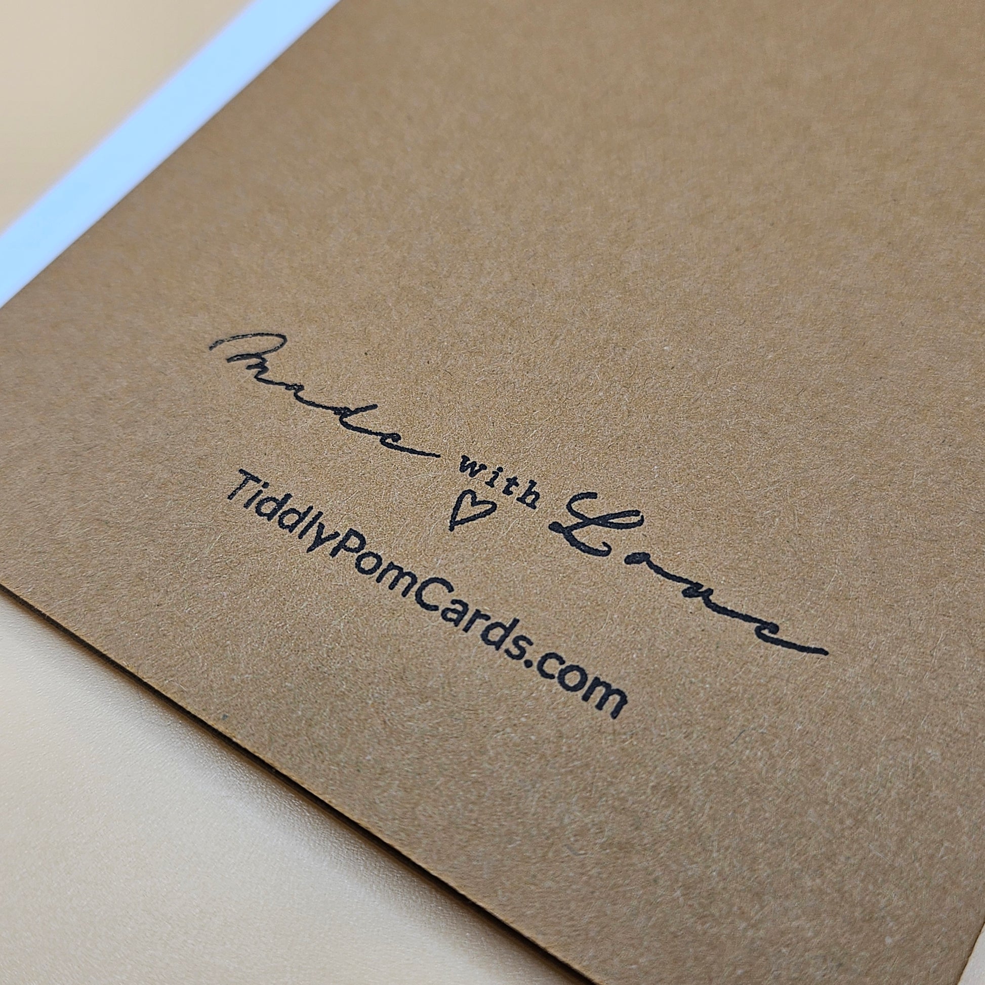 Each card is handmade with layered textures, dimension, and care—no mass production here. We use premium materials, hand-cut elements, and creative techniques like embossing, stamping, and decoupage to ensure every card feels personal and truly one-of-a-kind. Our logo and website are printed on the back of the card.